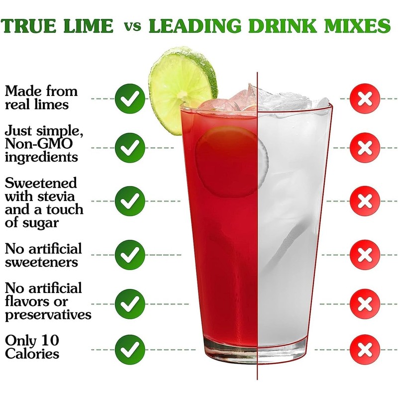 - TRUE LIME WATERMELON LIMEADE DRINK MIX: Made from real lime juice and oils and naturally sweetened with stevia, our black cherry limeade drink mix is made with simple and clean ingredients that you can pronounce