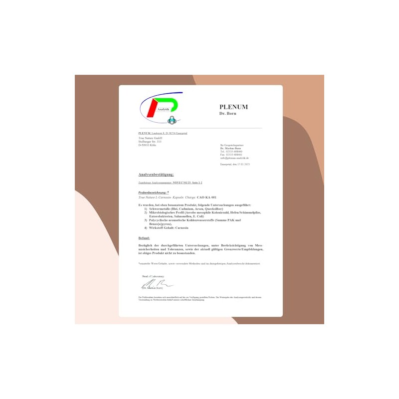 • ???? SORGFALT, AUF DIE DU Z?HLEN KANNST  Als deutsches Unternehmen mit h?chsten Qualit?tsstandards setzen wir auf hochwertige Zutaten und strenge Kontrollen. Trotz reinster Verarbeitung zertifiziert* (siehe Laborzertifikat/ Analysebest?tigung in den Produktbildern) ein unabh?ngiges deutsches Labor Reinheit und Wirkstoffgehalt jeder Charge. Der Rohstoff wird in Deutschland gem?? ISO- und HACCP-Standards abgefllt.