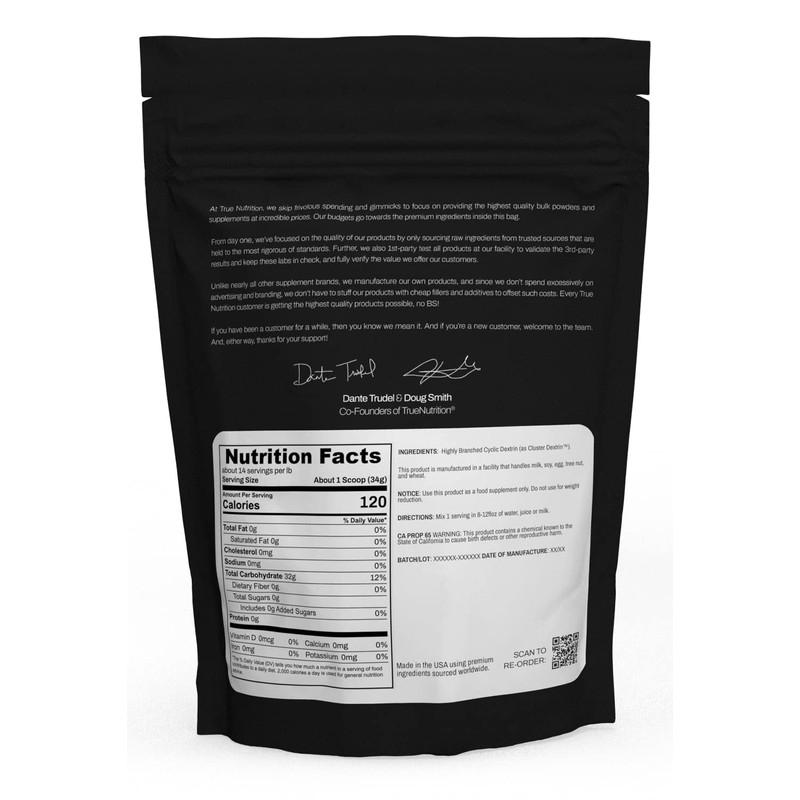 True Nutrition - Highly Branched Cyclic Dextrin - Carbohydrate Powder for Sustained Intra-Workout Energy, Enhanced Post-Workout Muscle Recovery - Vegan and Non-GMO - Unflavored 1lb