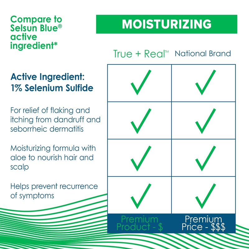 True+Real Moisturizing Dandruff Shampoo with Aloe and Selenium Sulfide 1%, 11fl oz
