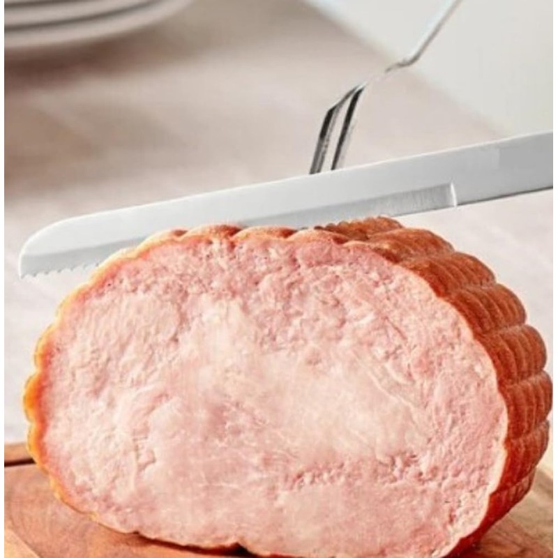 The long, narrow blade shape is perfect for slicing large cuts of meat such as brisket, turkey, ham, or roast beef, making it an essential tool in both professional and home kitchens.