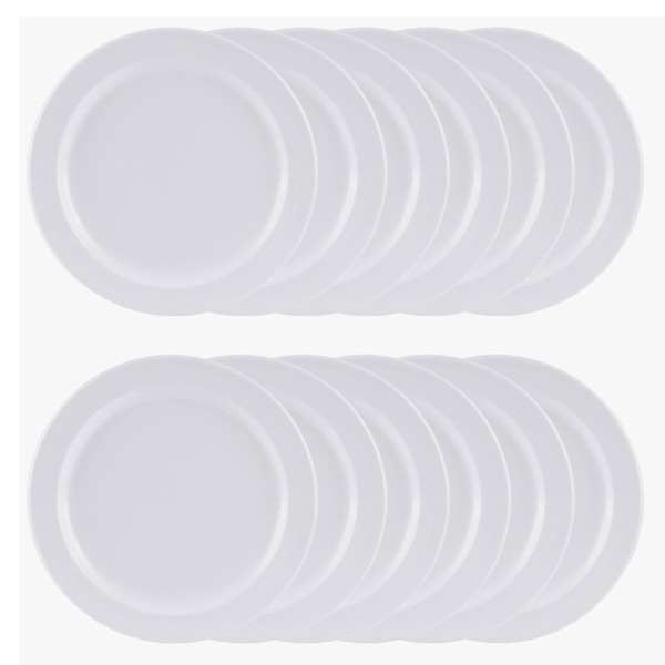 TrueCraftware- 6-1/2" Round Plate White Color Melamine Set of 12- Reusable Plates Kitchen Plates Dinnerware Serving Platter Dishes Dishwasher Safe Break-Resistant for Home Kitchen