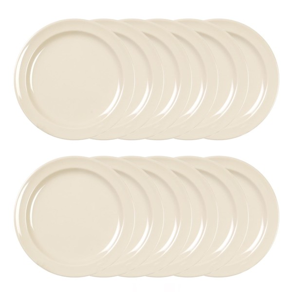 TrueCraftware- 8" Dinner Plate Tan Color Melamine Set of 12- Reusable Plates Kitchen Plates Dinnerware Serving Platter Dishes Dishwasher Safe Break-Resistant for Home Kitchen
