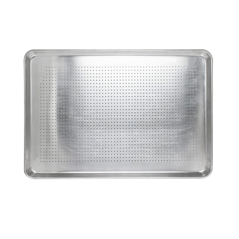 • Features tiny perforations, the pan maximize air flow and allow heat to circulate around the product. Enveloped in heat, the product bakes evenly and more quickly than on a solid pan; it's also finished with a delicate crispiness that takes your baked goods to a whole new level.
