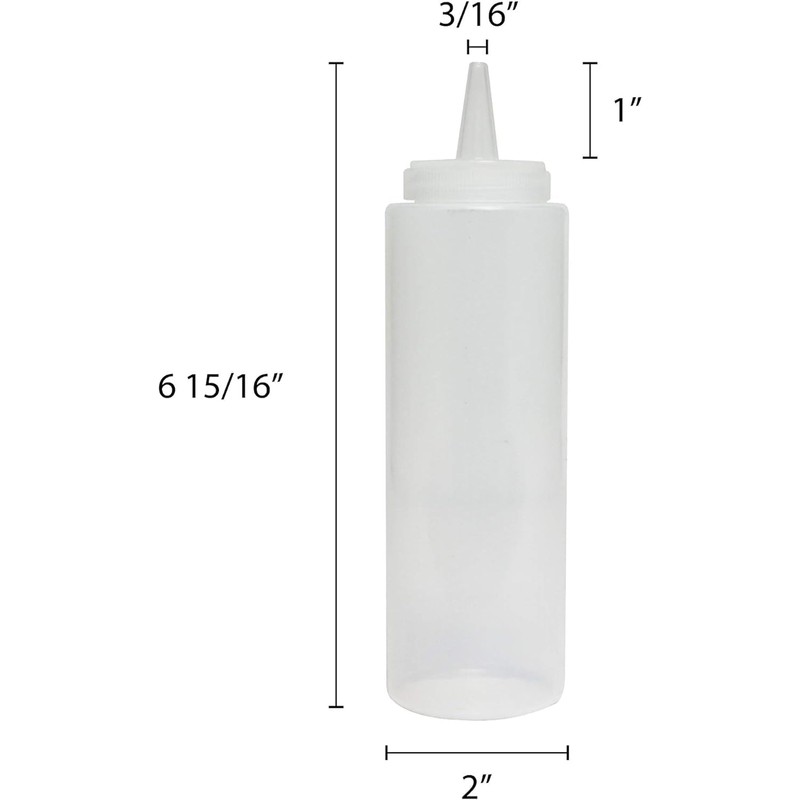 - Measures 8 oz, 2" Diameter x 7" Height, Squeeze Bottle, Clear Color, Polyethylene Bottle with Polypropylene Cap, Temperature withhold for Cap: 194˚F