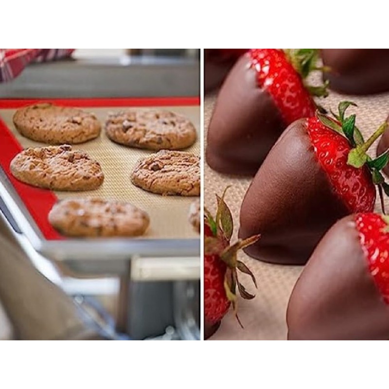 • This mat is pre-cut for your convenience. It is perfect for use with pans to help you streamline your baking process and the rounded edges provide an easy fit. You can even place this mat under cutting boards to keep them in place while cutting.