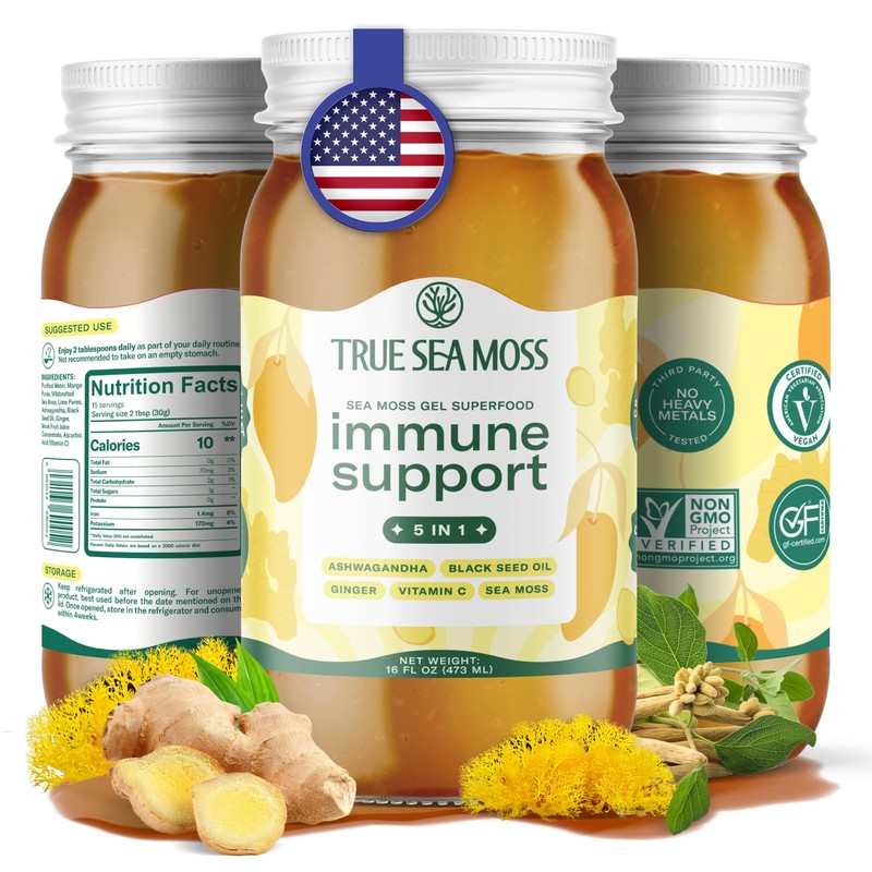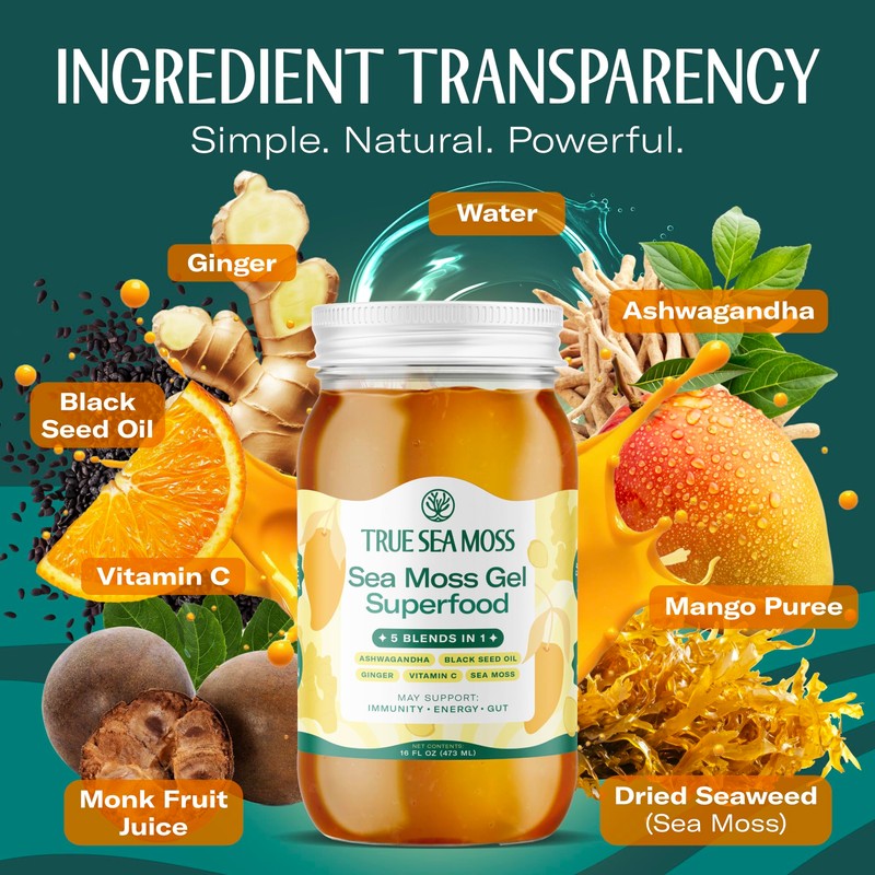 • ASHWAGANDHA BLACK SEED OIL GINGER VITAMIN C & SEA MOSS: Give your body a daily delight of nature's best superfoods with wildcrafted sea moss gel mixed with tropic fruits to give more antioxidants, vitamins and better flavor.