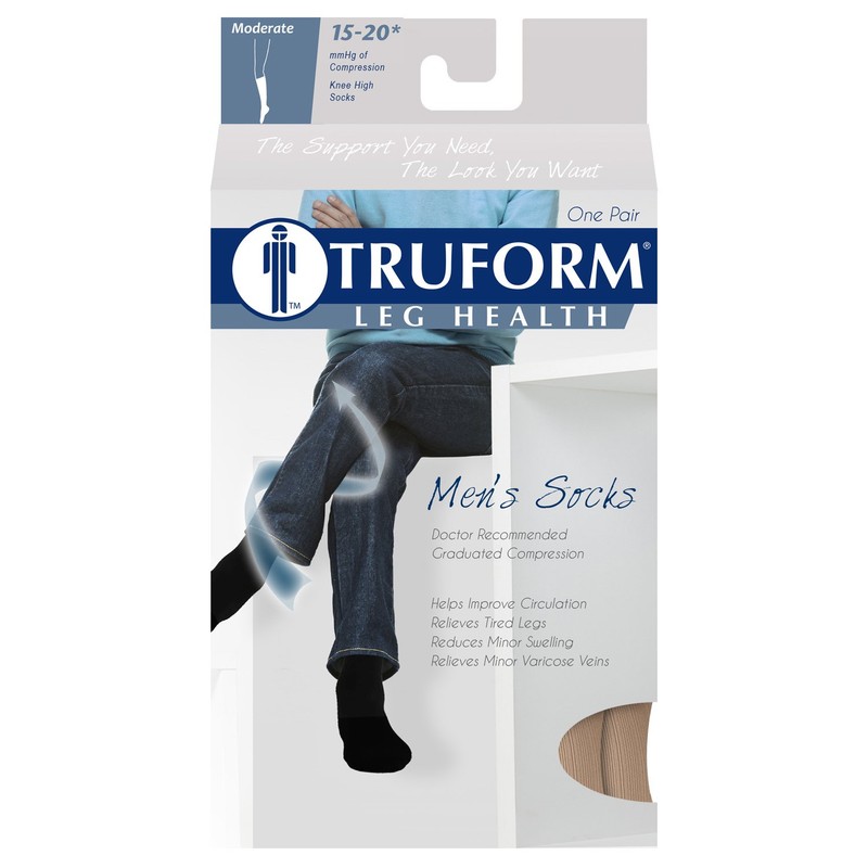 - Truform 1933; Men's active casual style support socks; 15-20 moderate strength graduated compression