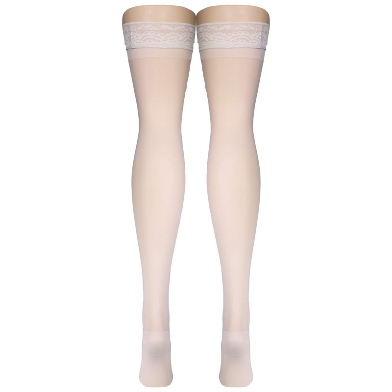 Truform Sheer Compression Stockings, 15-20 mmHg, Women's Thigh High Length, 20 Denier, Ivory, Large
