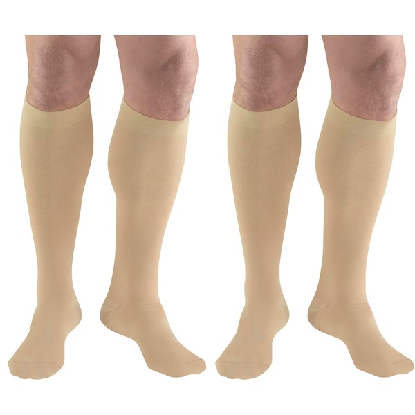 Truform Short Length Surgical Stockings, 18 mmHg Compression for Men and Women, Reduced Length, Closed Toe, Beige, Short Length, Small (2 Pairs)