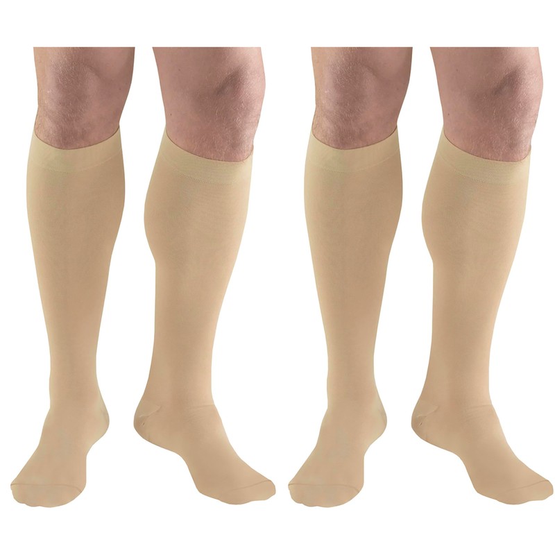 Truform 8808 from the "Classic Medical" series for both men and women uses graduated compression technology to restore leg health. A higher 18 mmHg compression rating is targeted at the ankle, and helps circulation during post hospital recovery. Anti-embolism, commonly referred to as TED (thrombo- embolism-deterrent) hose are a preferred choice for recuperating patients. These compression stockings are doctor recommended for post-surgical treatment. The smooth knit and traditional styling are made to perform with daily use. Opaque material conceals various conditions using a functional design for increased durability. Sizes range from standard to plus size XXXL. Package includes 1 pair. Choose short length size when length from heel at floor to back bend of kne measures less than 15 inches.