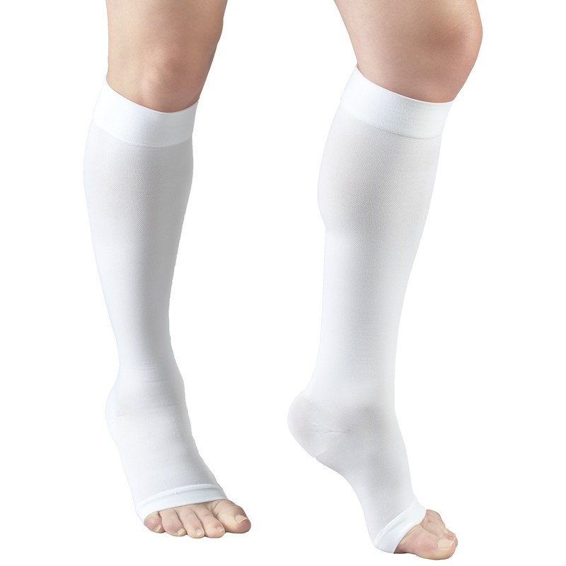 Truform Surgical Stockings, 18 mmHg Compression for Men and Women, Knee High Length, Open Toe, White, 3X-Large