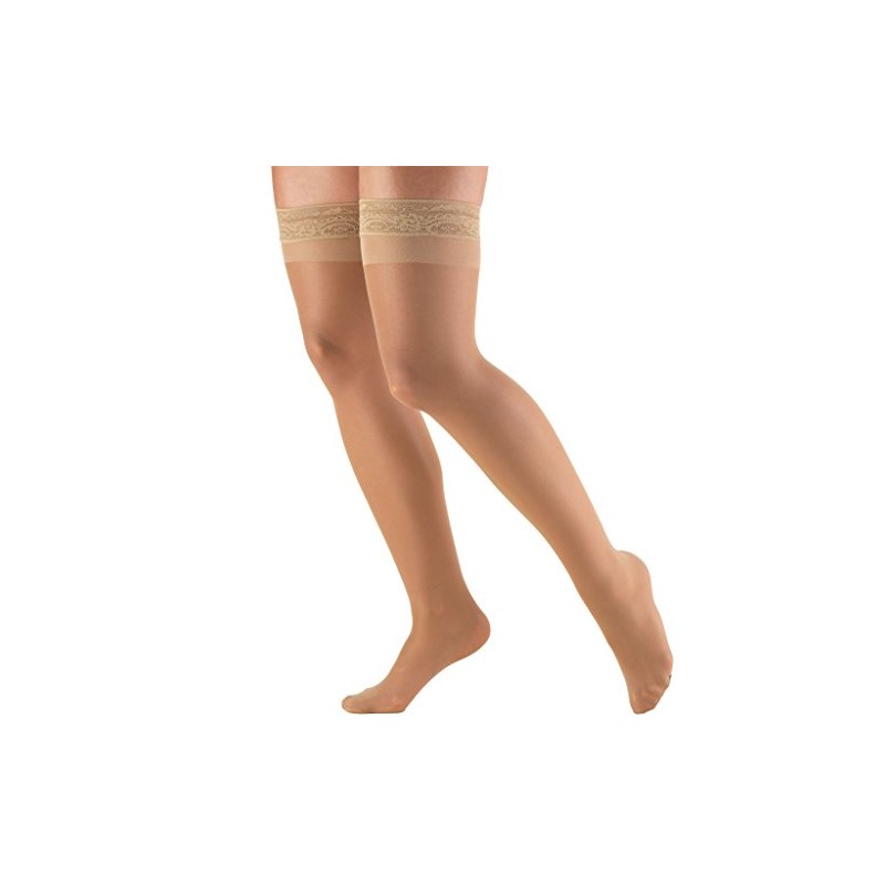 Product DescriptionTruform 1764 from the Truform Lites series provides mild graduated compression to help energize the legs and reduce discomfort. The 8-15 mmHg mild compression level is great for leg fatigue and slight ankle, leg and foot swelling. They provide long-lasting support that appeals to today's active, fashion conscious woman and serve excellently as both business and casual wear. Truform stockings, socks, and pantyhose feature Graduated Compression Technology, which delivers a compressive action to the leg that is greatest at the ankle, then gradually decreases toward the heart. This graduated compression provides two primary benefits to the legs: increased pressure on tissues beneath the skin helps reduce and prevent swelling for the wearer, and the compression action helps control the size of the superficial veins that lie just beneath the skin; preventing the slowing of blood flow so it can flow more quickly up the leg and back toward the heart. They feature five intervals of therapeutic graduated compression, doctor-recommended to help relieve tired, heavy, and aching legs, aid in the treatment of spider veins, varicose veins, and swelling of the leg and feet; ideal when sitting or standing for long periods of time. We take the extra time and effort necessary to insure a therapeutically effective, comfortable fit. The combination of state-of-the-art materials and equipment, plus knitting know-how sets Truform apart from the crowd to make your legs look and feel great.Manufacturer Contact Information3960 Rosslyn Dr, Cincinnati, OH 45209