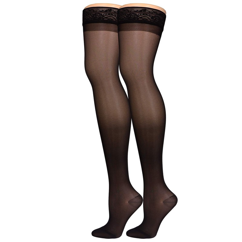 Truform Women's 15-20 mmHg Sheer Thigh High Compression Stockings, Black, Medium