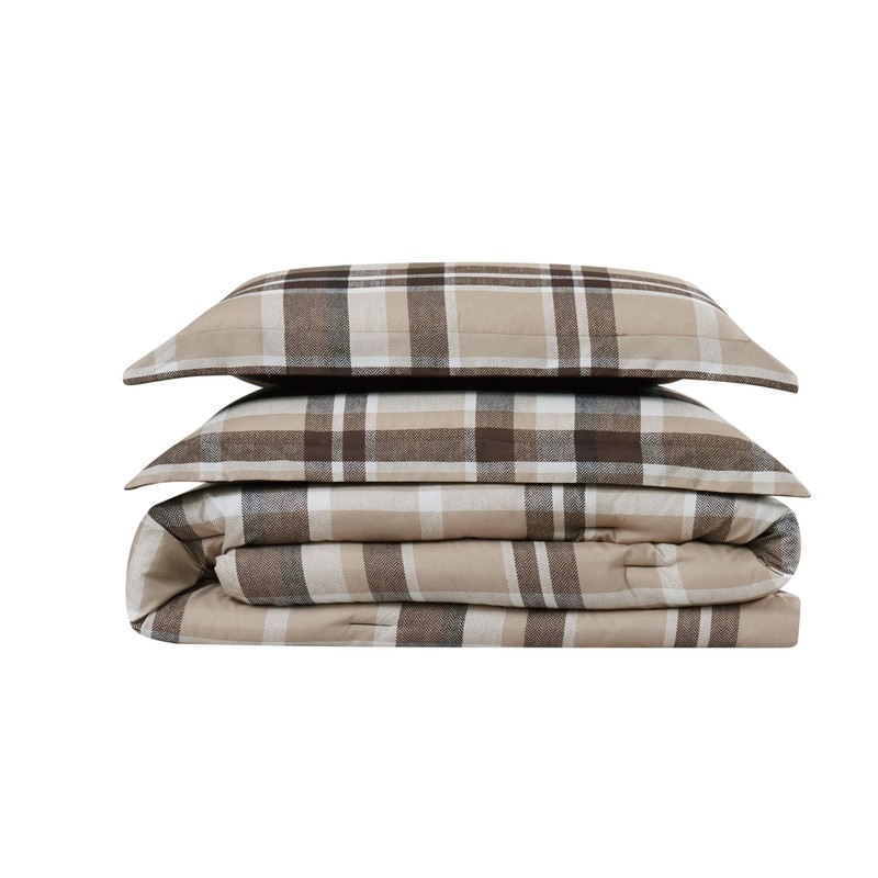 Truly Soft Paulette Plaid Taupe Twin XL 2 Piece Duvet Cover Set