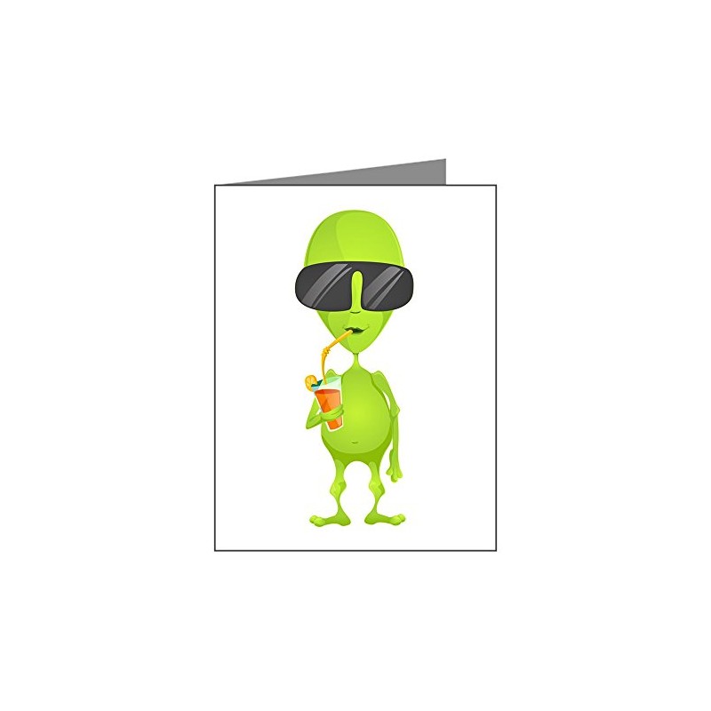 Truly Teague Note Cards (10 Pack) Little Green Alien Sipping a Drink