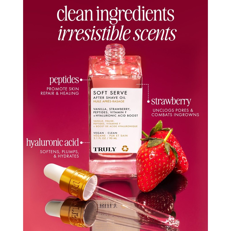 Truly Beauty Soft Serve After Shave Oil | Hydrating Treatment for Ingrowns & Irritation | Peptides, Hyaluronic Acid & Strawberry Extract | Soothes & Smooths Skin | Strawberry Vanilla Scent (3.1 Fl Oz)