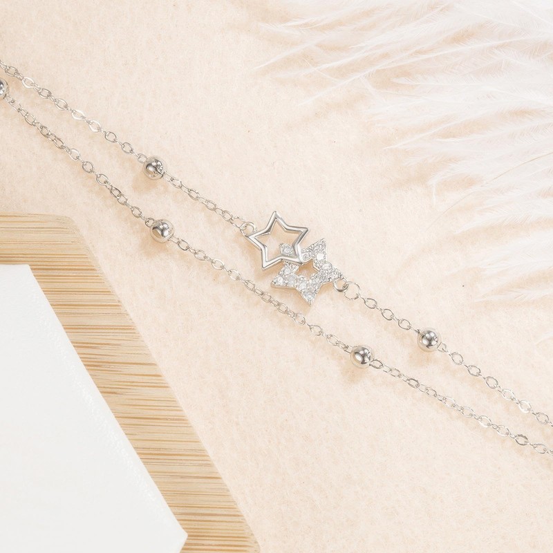 - 【🌟CONCEPTO DE DISEÑO︎🌟】- Este brazalete es elegante sin perder personalidad y el diseño del colgante de doble capa y estrella de cinco puntas lo hace lucir muy especial. Imagina una pulsera ligera que rodea suavemente tu muñeca, y con cada delicado movimiento, libera un resplandor deslumbrante, con un brillo atractivo y una elegancia femenina, permitiéndote brillar entre la multitud.