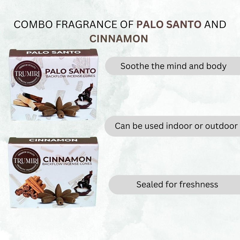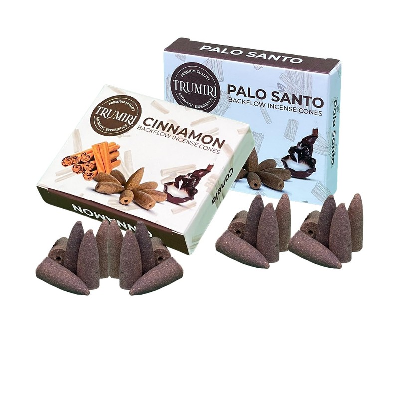 TRUMIRI Backflow Incense Cones - Combo Pack of 20 Incense Cones Waterfall - 10 Palo Santo + 10 Cinnamon - Incense Backflow Cones - Waterfall Incense Cones - Incense Waterfall Cones