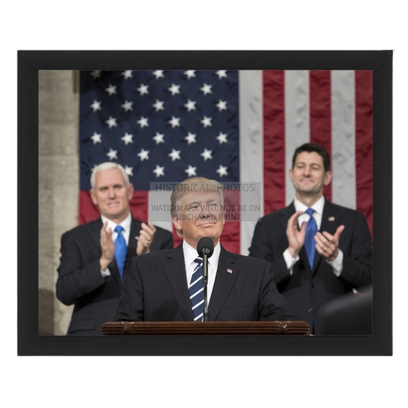 TRUMP DELIVERING JOINT ADDRESS TO CONGRESS OVER FIRST 100 DAYS 8X10 FRAMED PHOTO