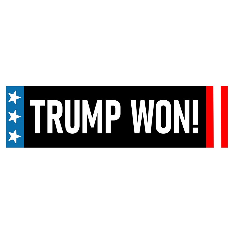 - TRUMP WON STICKER!: Own the libs with this fun Donald Trump sticker. We sent one to Joe Biden at the White House. Hope he likes it! One said:: "Just letting you know Trump Won bumper sticker offended countless drivers and their passengers in traffic everywhere. Triggered so many idiots..." The courts say Biden won but you can express your opinion and First Amendment Rights.