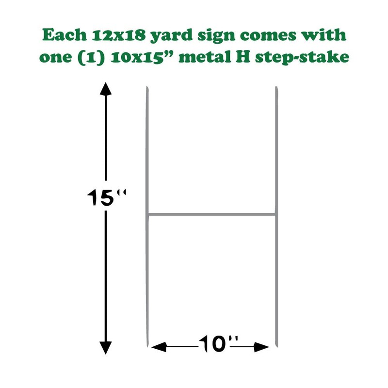 - 12x18 inch sign with included metal stake for easy install. The stake simply slides into the ground and also into the flutes of the sign.