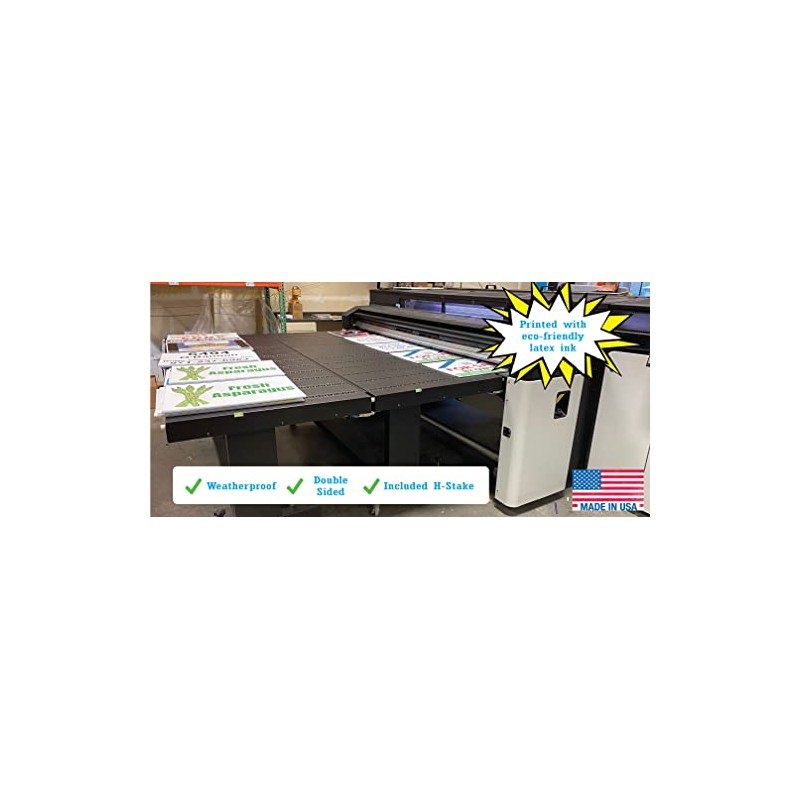 - Printed on premium corrugated plastic with UV resistant latex inks. Waterproof / fadeproof..
