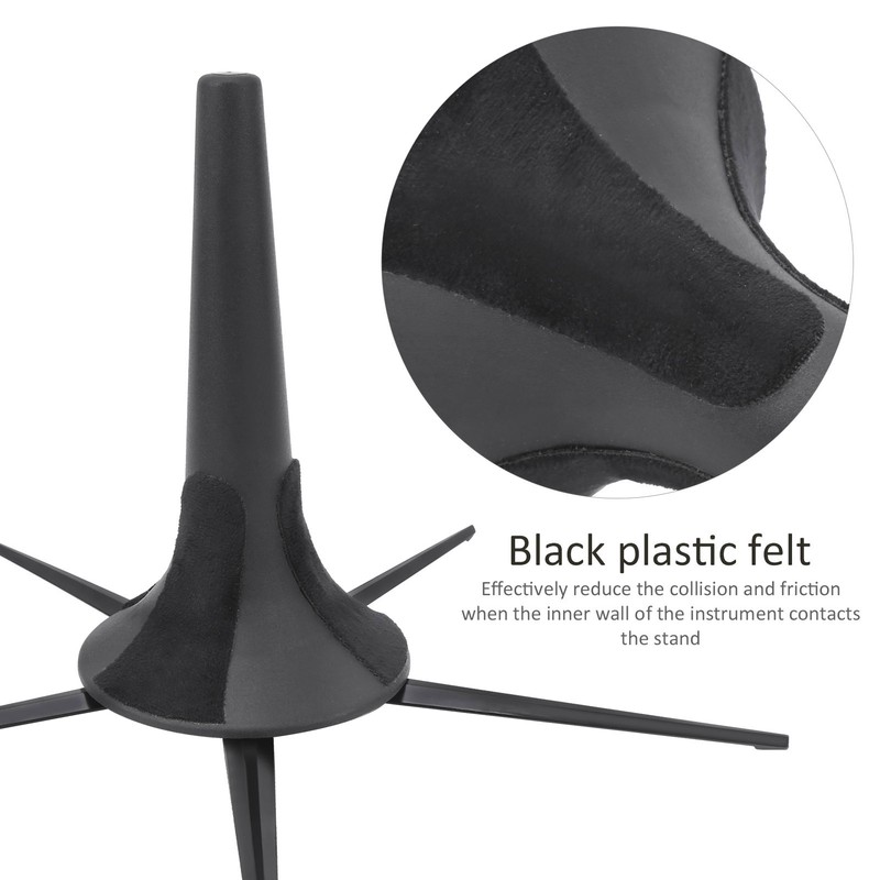 1、The removable metal stand with rotating screws can be folded into the bell mouth of the instrument. 2、Black plastic felt, which effectively reduces the collision and friction when the inner wall of the instrument contacts the stand, and also plays a role of anti‑slip. 3、Easy to carry, detachable bracket, fast folding, convenient and time‑saving, durable and reliable. 4、After being detachable, it can be stored in the base or placed in the bell mouth, so it does not take up space. 5、Metal bracket, not easy to shake, more stable, to bring more stable protection to your instrument.