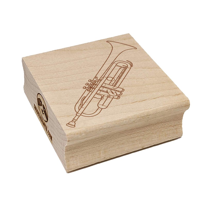 Trumpet Brass Musical Instrument Square Rubber Stamp for Stamping Crafting - 1.75in Medium