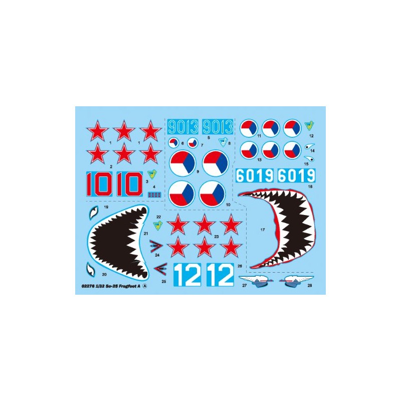 The Suk hoi Su-25 ("Frog foot") is a single-seat, twin-engine, armored assault aircraft developed in the Soviet Union by the Suk hoi Design Bureau. It was designed to provide battlefield close support. The first prototype made its maiden flight on February 22, 1975. This plastic model kit is an accurate representation of the military vehicle.