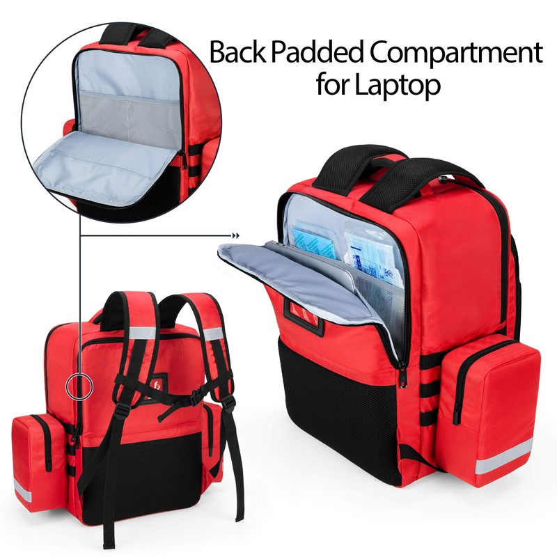 Trunab Emergency Medical Backpack Empty, EMT Camping Molle Bag with Detachable Side Pocket and No-Slip Bottom for Camping, Hiking, Traveling, Daycare, Red, Bag Only