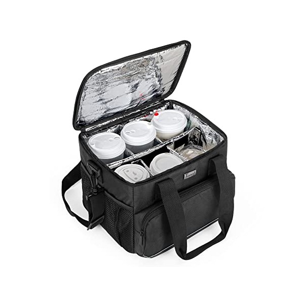 - Padded handle and shoulder strap facilitate you to this to-go cup delivery carrier. The two-way zippers allow you to access food or drinks inside of the bag quickly.