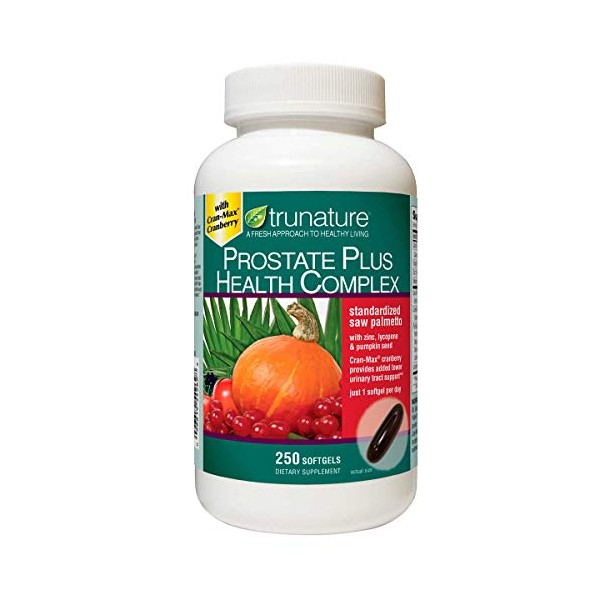 TruNature Prostate Plus Health Complex - Saw Palmetto with Zinc, Lycopene, Pumpkin Seed, Cranberry - 250 Softgels (1 Bottle)