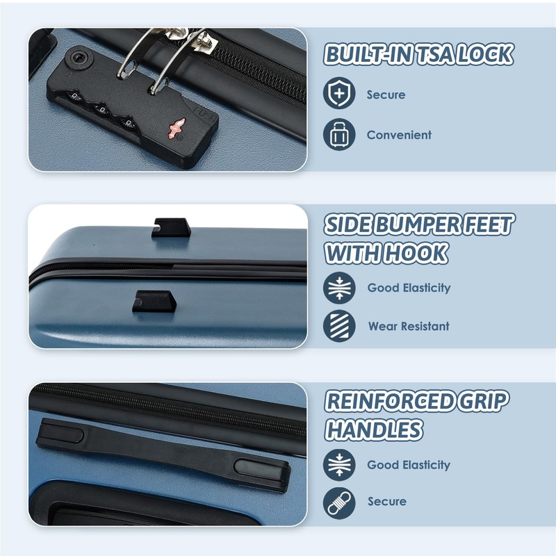 - Ultra-Durable Hardshell Luggage Sets: Made of premium lightweight ABS material, our 3-piece luggage set passes strict drop/load tests to protect belongings from impacts, perfect for rugged travel.