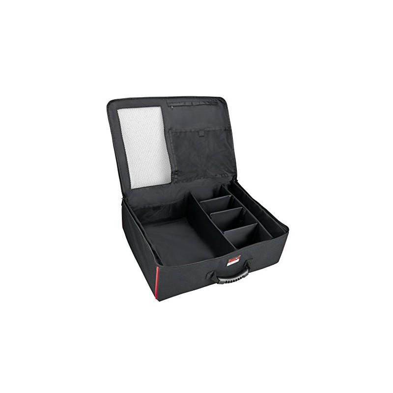 - Plenty of room (19\x15\"x6\") to keep all of your extra gear from rolling around the back of your car. Adjustable dividers allow you to customize your storage to your particular needs. Large pockets in the top for extra storage and Mesh Ventilation to allow shoes to breathe