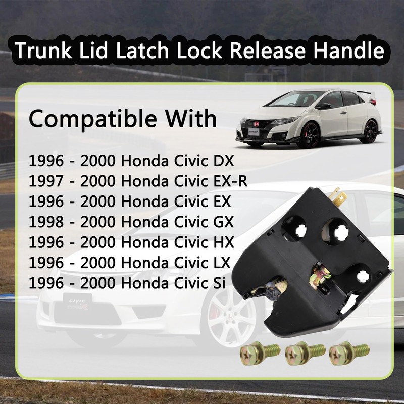 - Compatible With:Trunk Lid Lock Latch Assembly 74851-S01-A01 Compatible with 1996 - 2000 Honda Civic DX ,1997 - 2000 Honda Civic EX-R,1996 - 2000 Honda Civic EX,1998 - 2000 Honda Civic GX,1996 - 2000 Honda Civic HX,1996 - 2000 Honda Civic LX,1996 - 2000 Honda Civic Si.Please check according to our information to match your model
