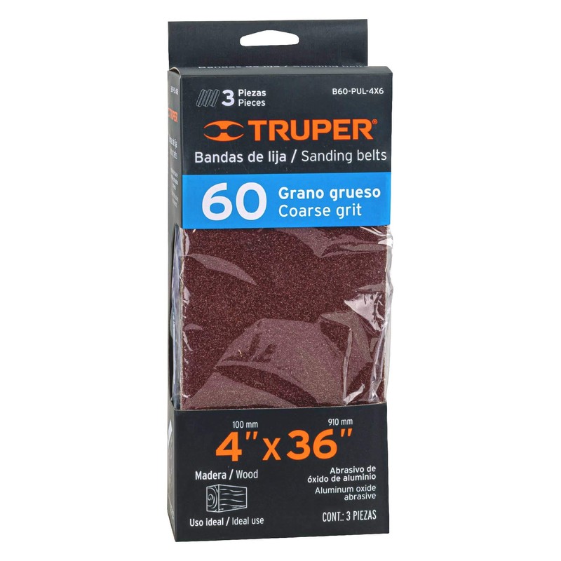 Truper B60-PUL-4X6, Bandas grano 60, para lijadora PUL 4x6, caja con 3 pzas