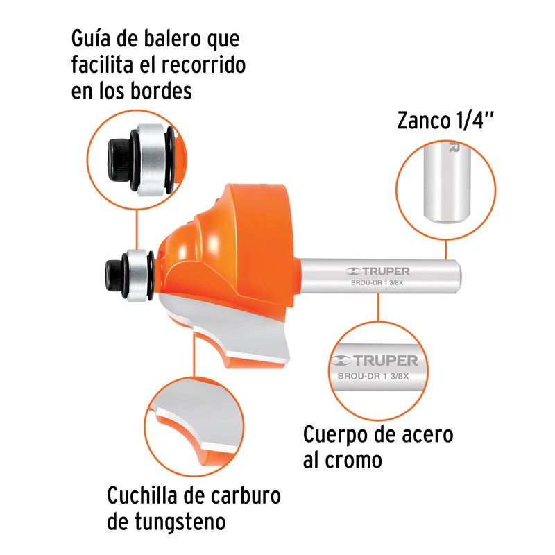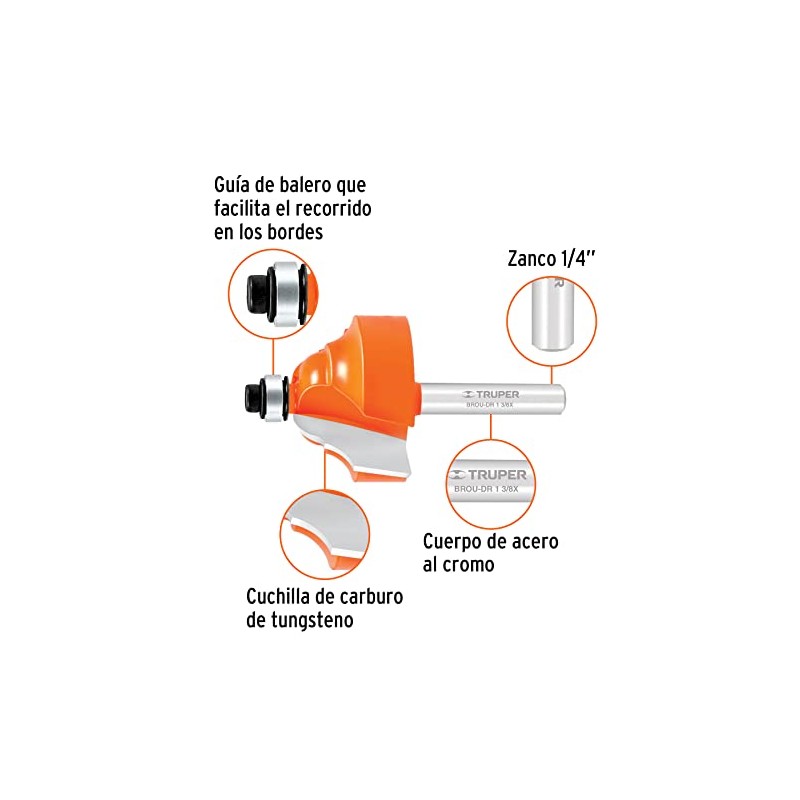 Truper BROU-DR1-3/8X, Broca doble romana con balero
