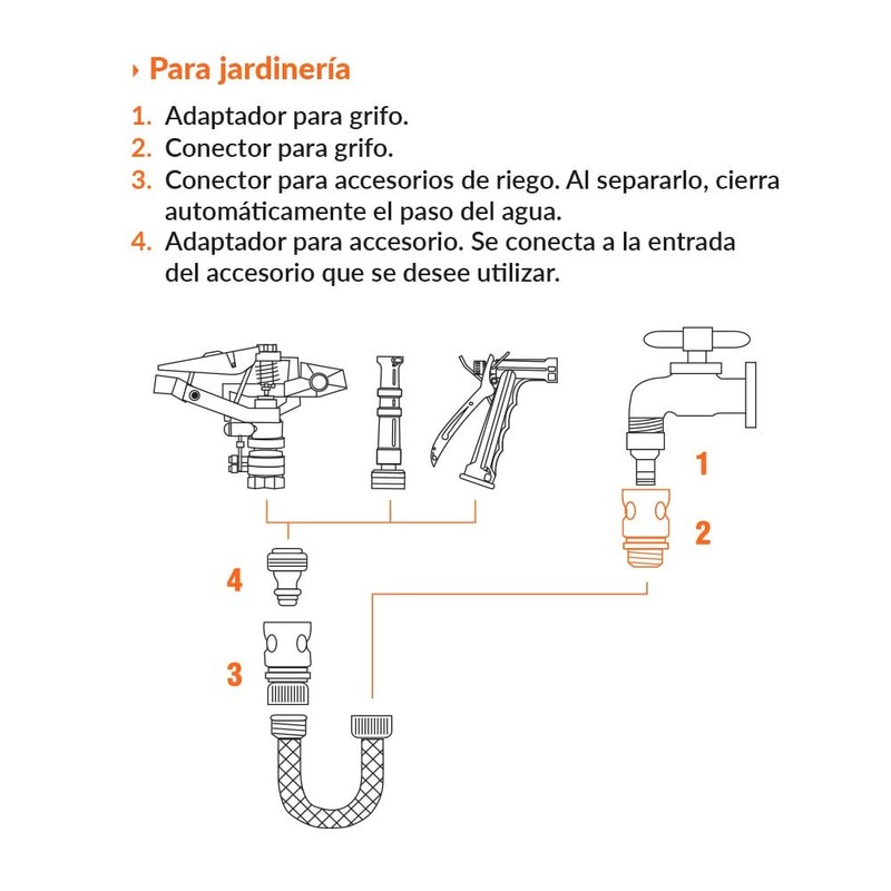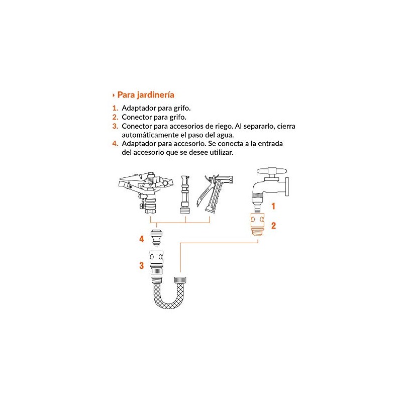- Ideal para cambiar al instante mangueras y accesorios de riego con conectores click de Truper