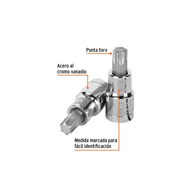 Truper D-543955-W, Dado de punta torx, T-55, cuadro 1/2"