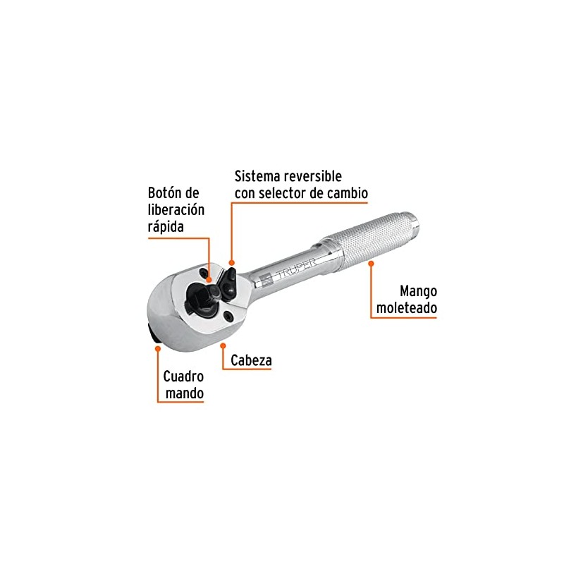 - Matraca Ratchet con sistema de engrane de 48 dientes fabricado en acero al cromo molibdeno con ángulo de giro de 7.5°