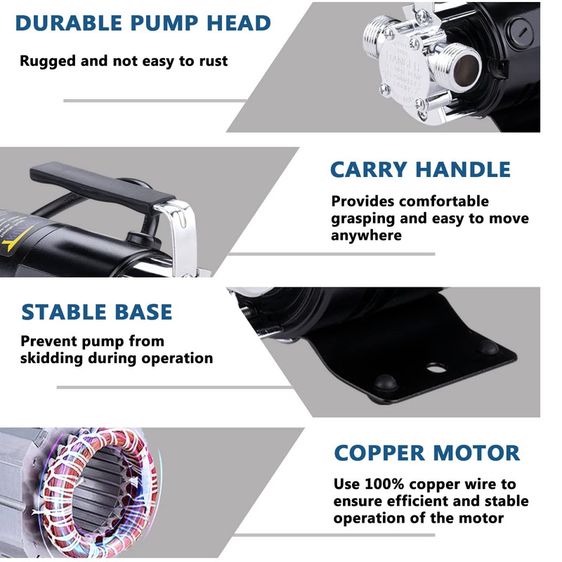 - 【POWERFUL WATER TRANSFER PUMP】This Utility Pump has 1/10 HP power with pure copper motor, it can transfer water up to 330 gallons per hour which tackles huge draining job at a fraction of the time.