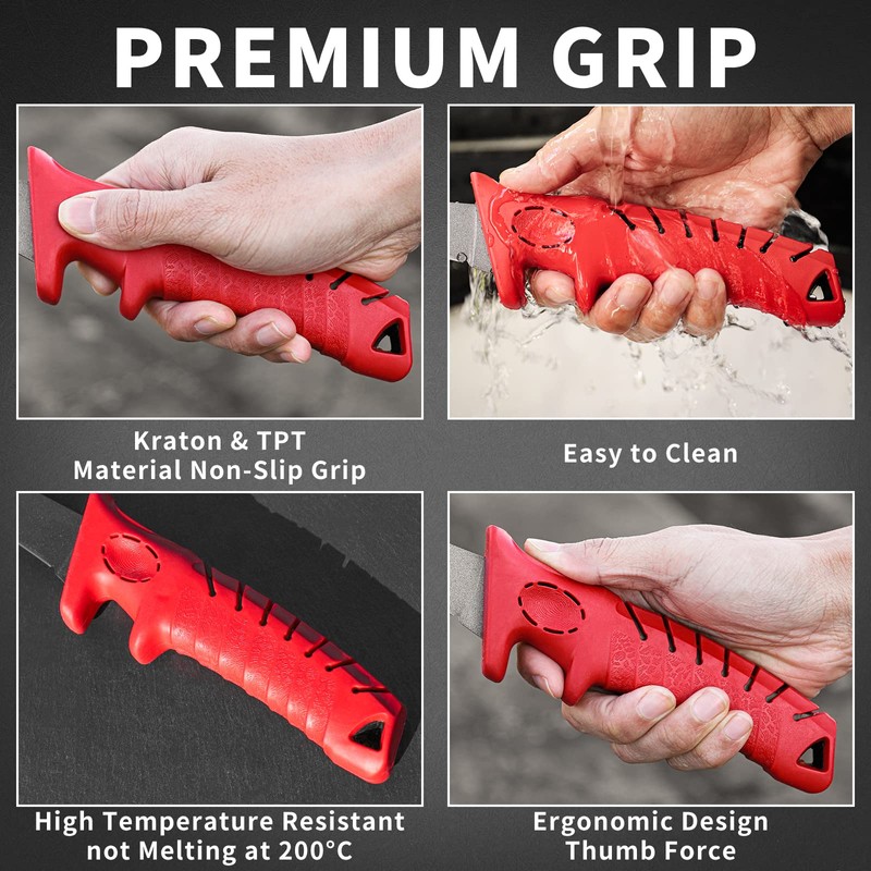 - The handle is made of a unique anti-corrosion and anti-rust non-slip KRATOM material with extreme chemical structural stability, ergonomic construction, refuses to hide dirt, feels comfortable in the hand, and stays sticky in wet or bloody conditions. Trigger grip gives you added control and security through the largest game, robust saft guards for protection from tne blades and spines of the fish.