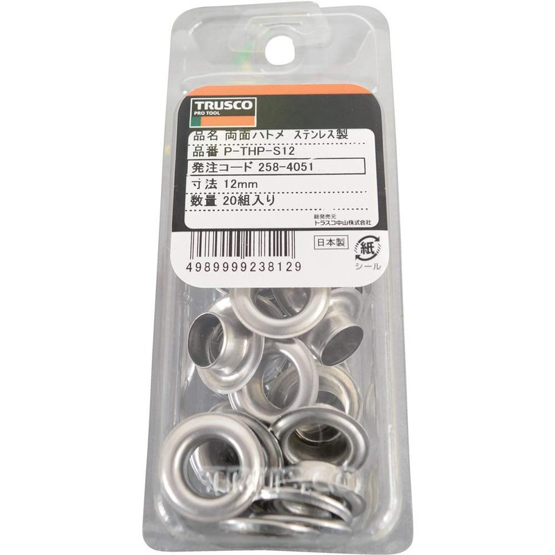 TRUSCO(トラスコ) 両面ハトメ ステンレス 12mm 20組入 P-THP-S12