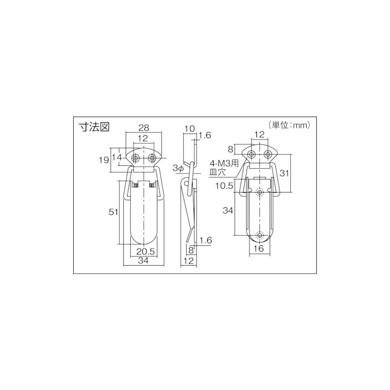 Size: ●本体取付穴寸法:3.5mm●受け穴寸法:3.5mm