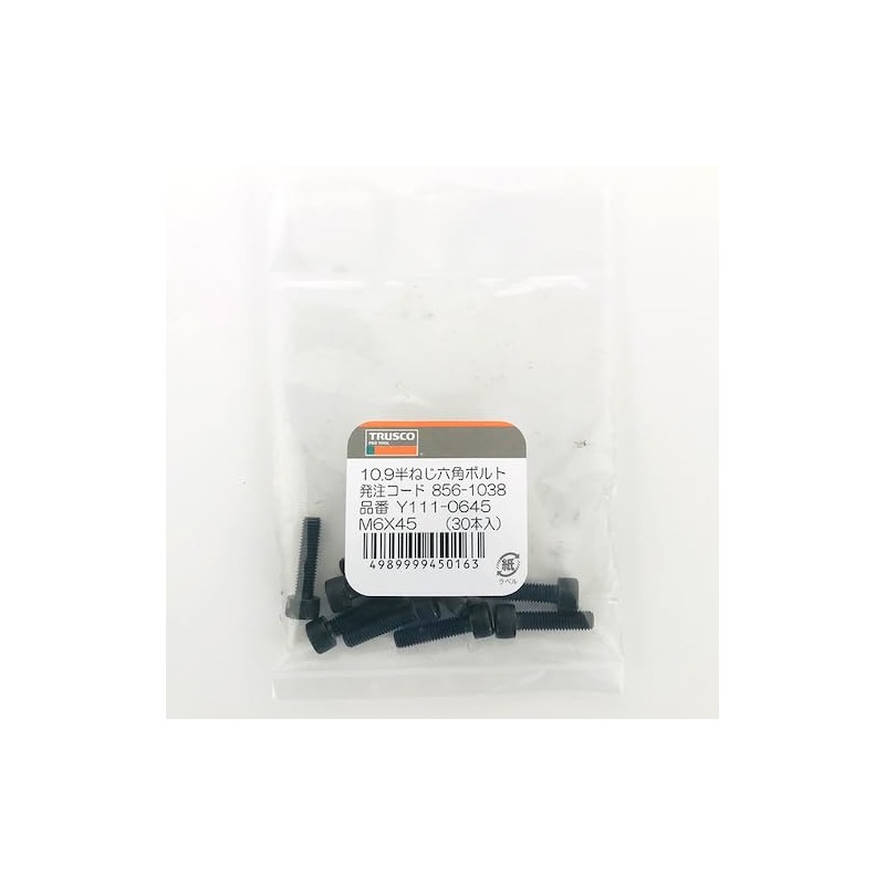 Trusco Y808-0616 Hex Socket Countersunk Bolt, Black Dyed, Full Thread, M6 x 1...
