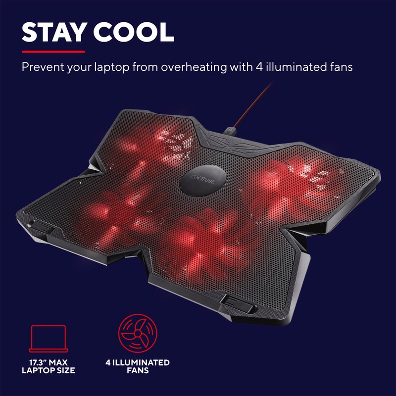 Trust Gaming GXT 278 Yozu Laptop Cooling Stand, Cooler for 17.3 inch Laptops, Height Adjustable Stand, 4 Illuminated Fans, Adjustable Fan Speed - Black
