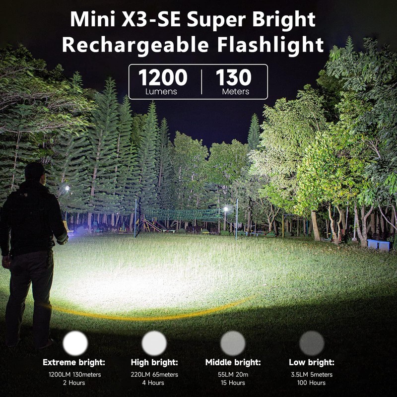 - 1200 Lumens Super Bright White Light: The Led flat flashlight light up your surroundings with an impressive 1200 lumens of bright, white light. The Trustfire Mini X3-SE flashlight guarantees you won’t miss a single detail, offering crystal-clear visibility for any scenario. Whether you're camping, hiking, or tackling daily tasks, this high lumens EDC flashlight strikes the ideal balance between brightness and clarity