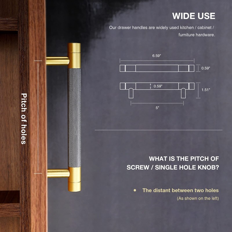 • DIAMOND-PATTERN DESIGN: Meticulously hand-forged cabinet pull body, diamond pattern finish provides a smooth and comfortable grip, as well as an impactful visual appearance. Gold & Grey finish