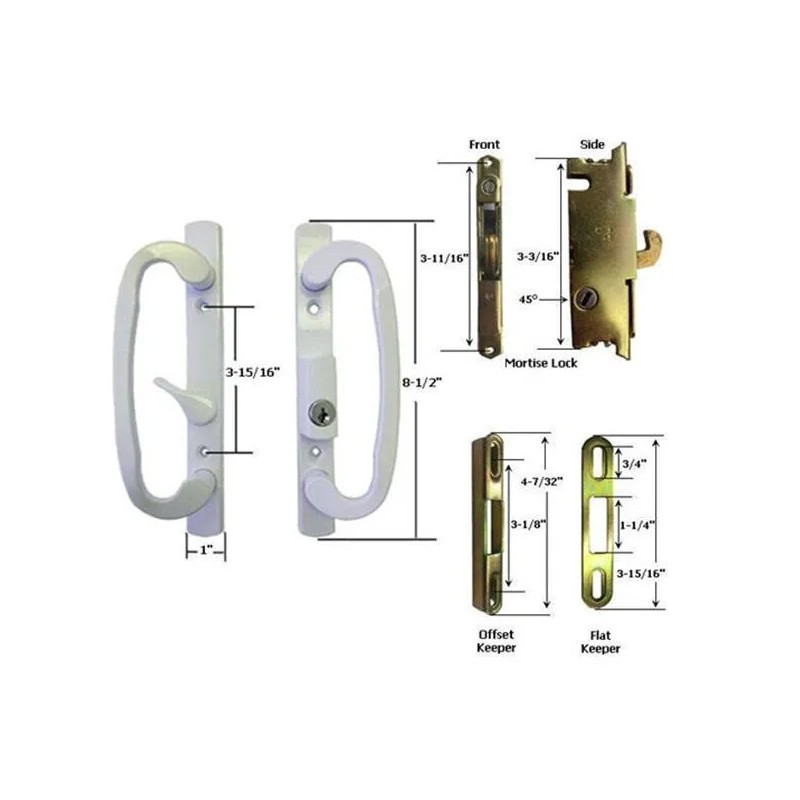 Truth Hardware Sliding Glass Patio Door Handle Kit Mortise Lock and Keepers, B-Position, White